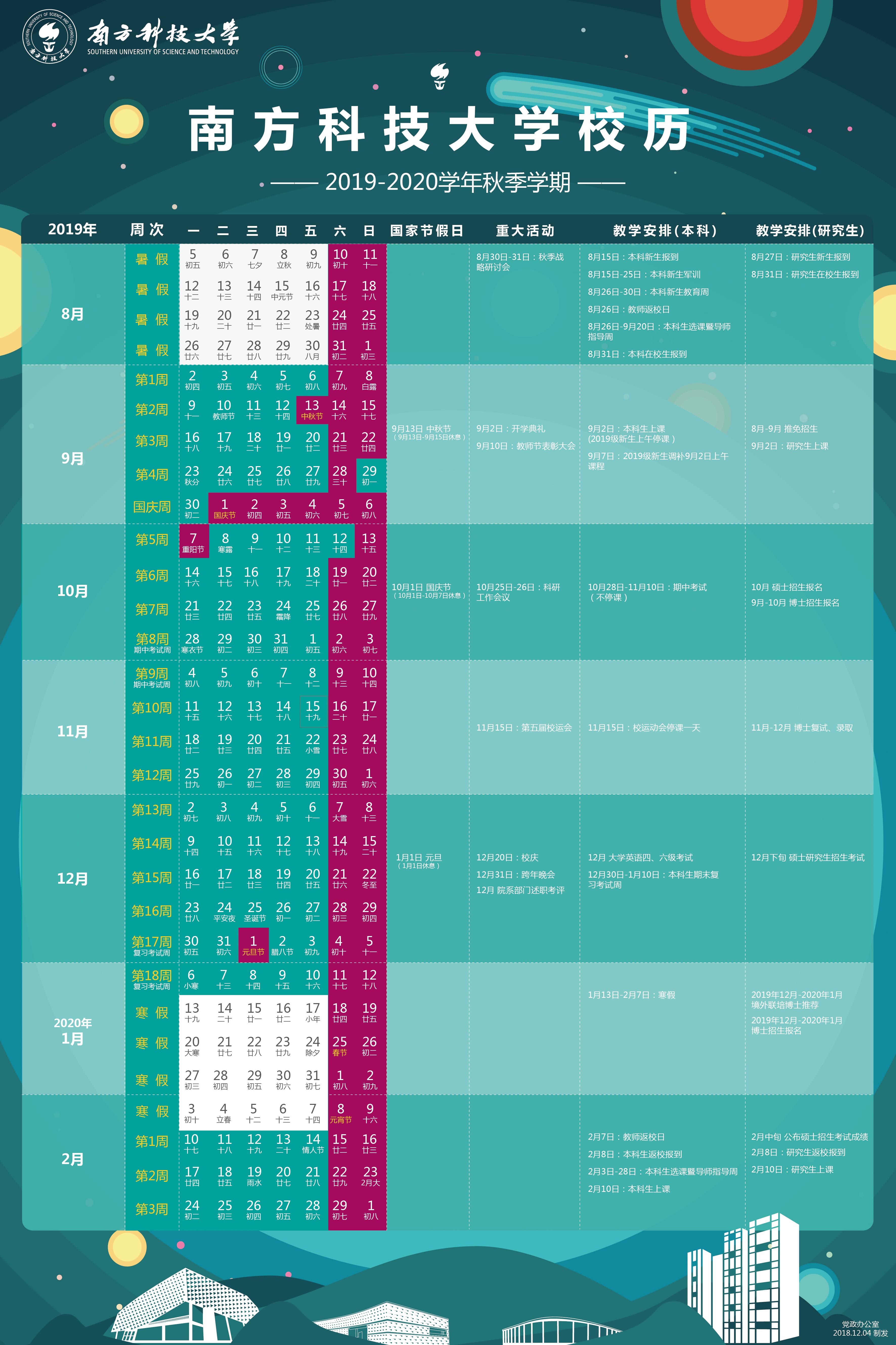 校历 - 2019-2020 学年